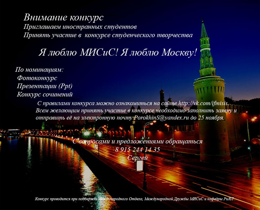 Творческий конкурс для иностранных студентов «Я люблю МИСиС! Я люблю Москву!»