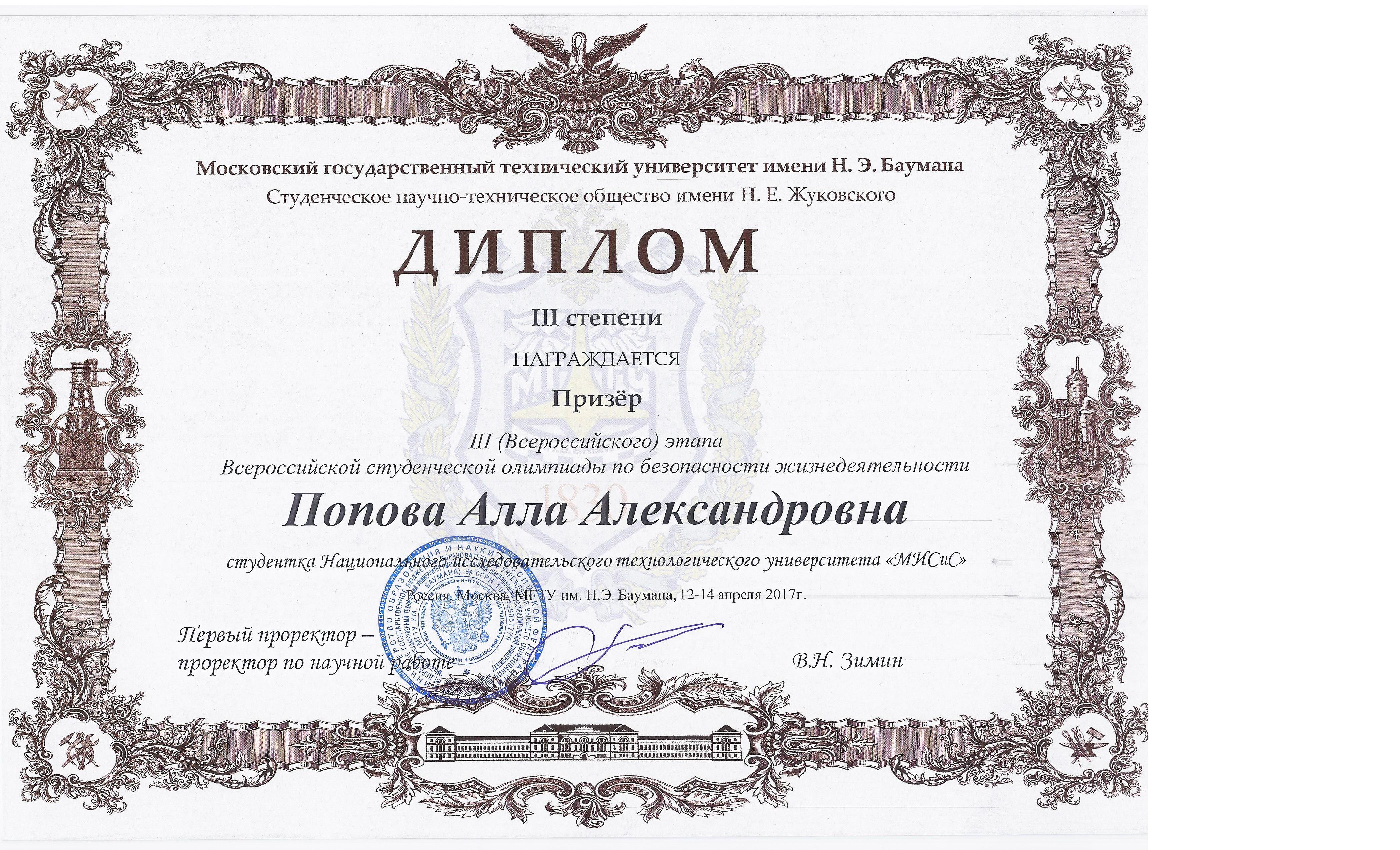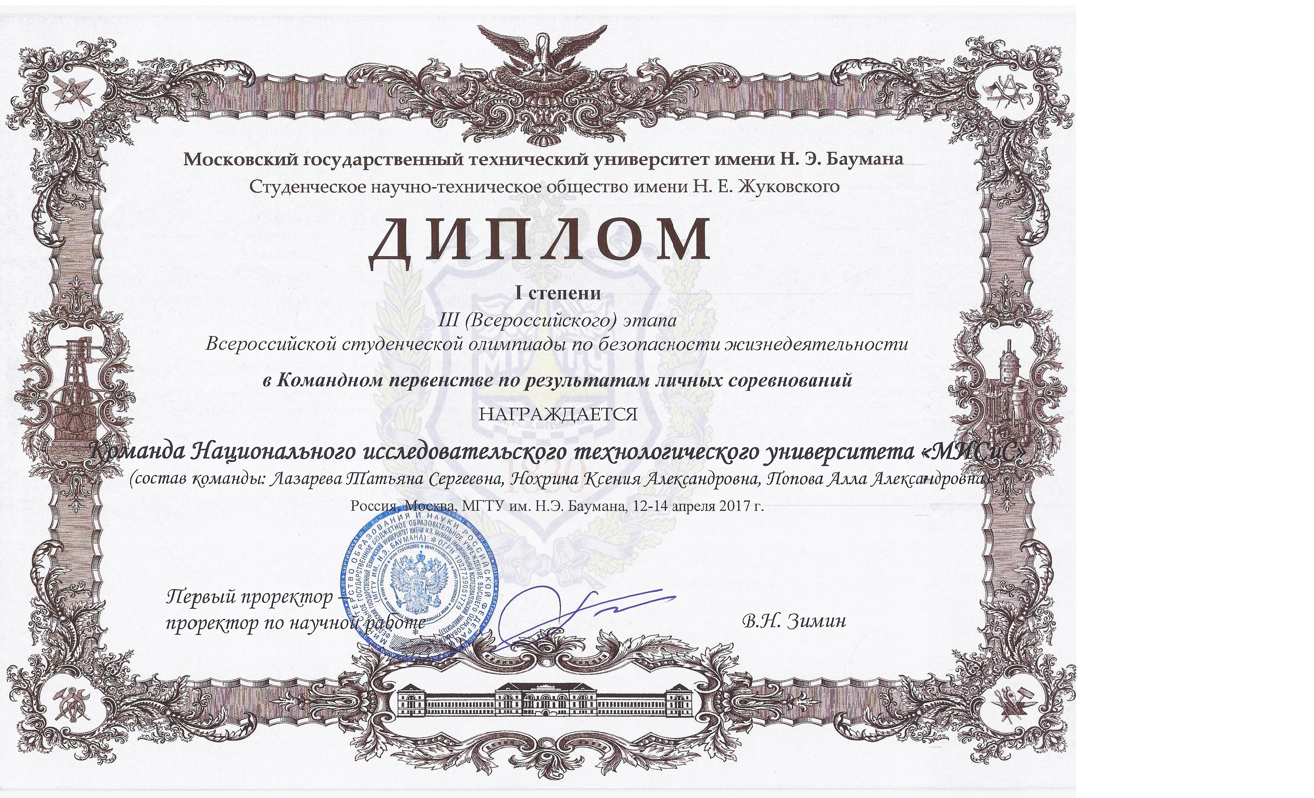 Команда НИТУ «МИСиС» заняла первое место в личном зачете Всероссийской студенческой олимпиады по безопасности жизнедеятельности, проходившей в середине апреля в МГТУ им. Н.Э.Баумана.