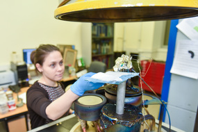«Нам удалось с помощью химических связей создать устойчивый слой, содержащий компоненты плазмы крови (факторы роста, фибриногены и другие важнейшие белки, способствующие росту клеток) на поликапролактоновой подложке. Базовые волокна были синтезированы методом электроформования, — рассказывает один из участников проекта, сотрудник лаборатории Елизавета Пермякова. — Затем с помощью плазменной обработки на поверхность наносился полимерный слой, содержащий карбоксильные группы, с целью увеличить гидрофильные свойства материала. Полученный слой обогащался антибактериальным и белковыми компонентами».