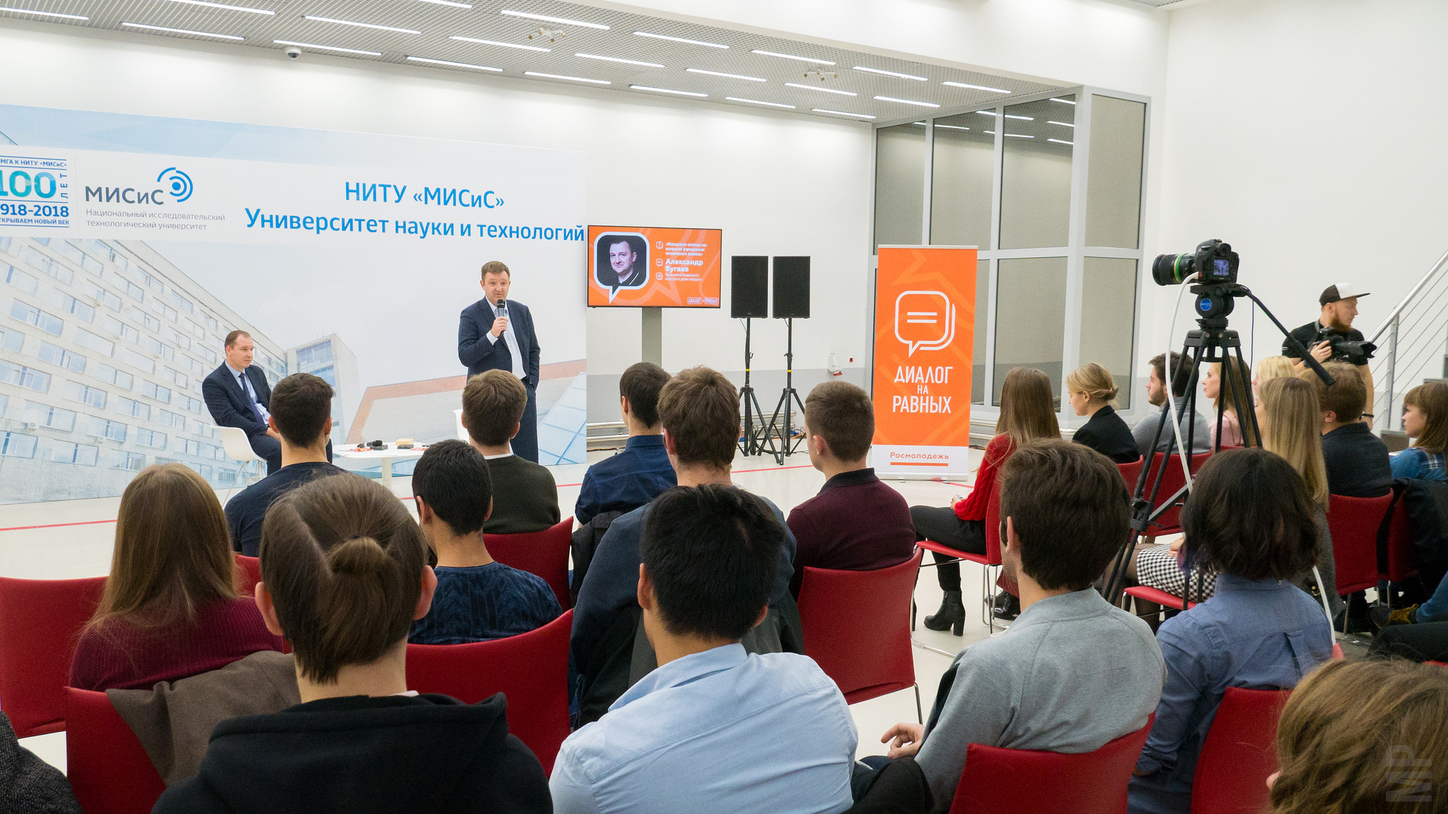 9 октября в центре прототипирования НИТУ «МИСиС» прошел «Диалог на равных» — встреча студентов НИТУ «МИСиС» с руководителем федерального агентства по делам молодежи «Росмолодежь» Александром Бугаевым.