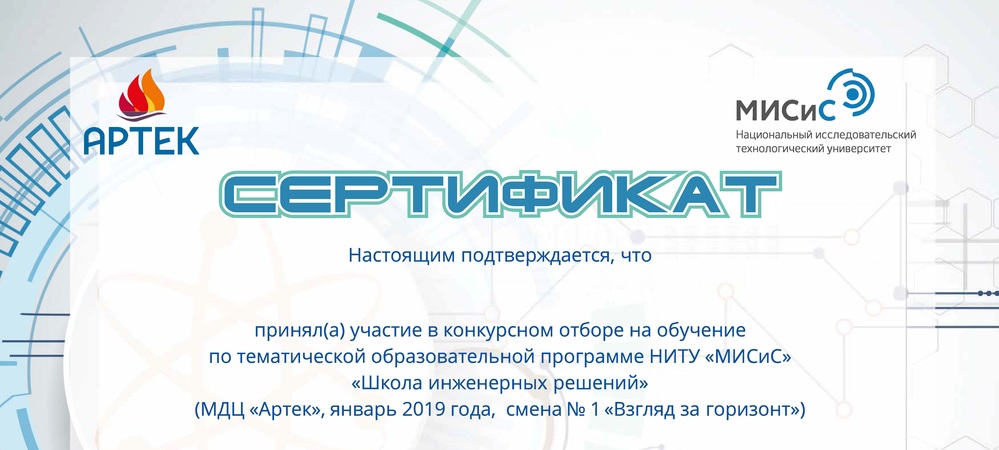 25 декабря 2018 года подведены итоги конкурса на получение бесплатной путевки в крупнейший детский центр в мире МДЦ «Артек» на тематическую смену НИТУ «МИСиС».