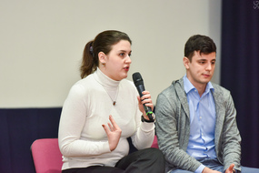 После торжественной церемонии вручения сертификатов Билл МакМэйнс, преподаватель английского языка и эксперт в области коммуникации провел панельную дискуссию с первыми выпускниками программы Touchstone@MISIS, где они рассказали, как английский язык помогает им в работе и повседневной жизни.