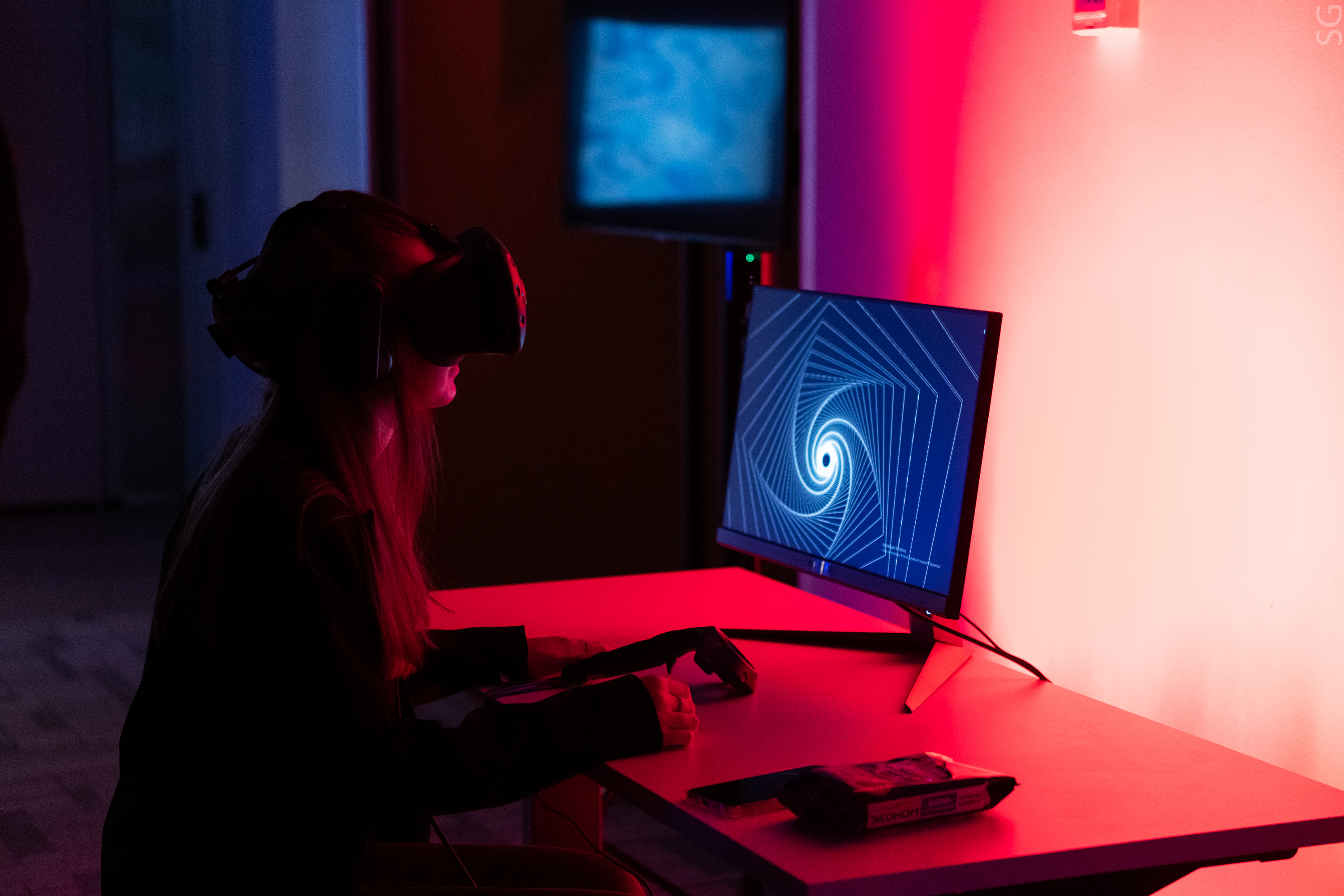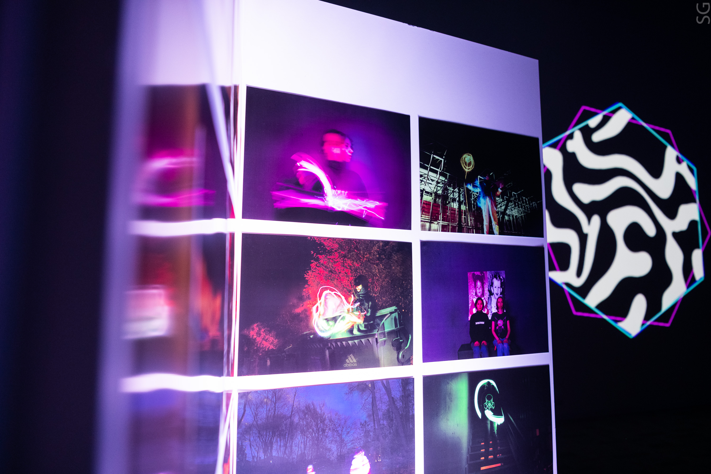 Пространство выставки ArtTECH HYBRID разделено на несколько частей: VR-зона, freezelight и инсталляции, в том числе интерактивные. На торжественном открытии студенты провели кураторские экскурсии и аудиовизуальные перформансы, вызывающие в зрителях целый спектр эмоций.