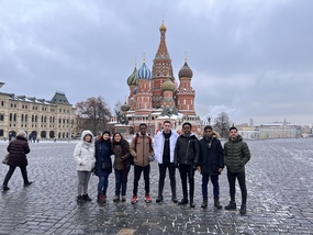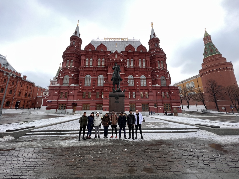 24 ноября 2022 года состоялась экскурсия по центру Москвы для группы ИТ-22-7. Экскурсия началась у памятника маршалу Г.К. Жукову, советскому полководцу времен Великой отечественной войны. В ходе экскурсии студенты ознакомились с главными достопримечательностям центра Москвы: Красной площадью, Храмом Василия Блаженного, увидели, где находится мавзолей Ленина, узнали о главных часах России — кремлевских курантах. От Красной площади маршрут проследовал до парка «Зарядье», в котором студенты наблюдали прекрасную панораму с Парящего моста на Москву-реку от Храма Христа Спасителя до известного дома на Котельнической набережной. После парка мы заглянули в главный магазин страны ГУМ, внутри которого студенты увидели предновогодние декорации: мини-елки, огромную новогоднюю ель, гирлянды, елочные игрушки, мишуру — все главные атрибуты российского нового года. После ГУМа мы проследовали на Никольскую улицу к Казанскому собору. Последней остановкой был Государственный исторический музей. В ходе осмотра экспозиций музея студенты могли наблюдать за развитием культуры и истории нашей страны, познакомились с экспонатами разных эпох: кремневыми орудиями первобытных людей, драгоценностями Золотой Орды, бородовыми знаками времен Петра Великого и наградами Александра Суворова, портретами монархов, полководцев и других исторических личностей.
