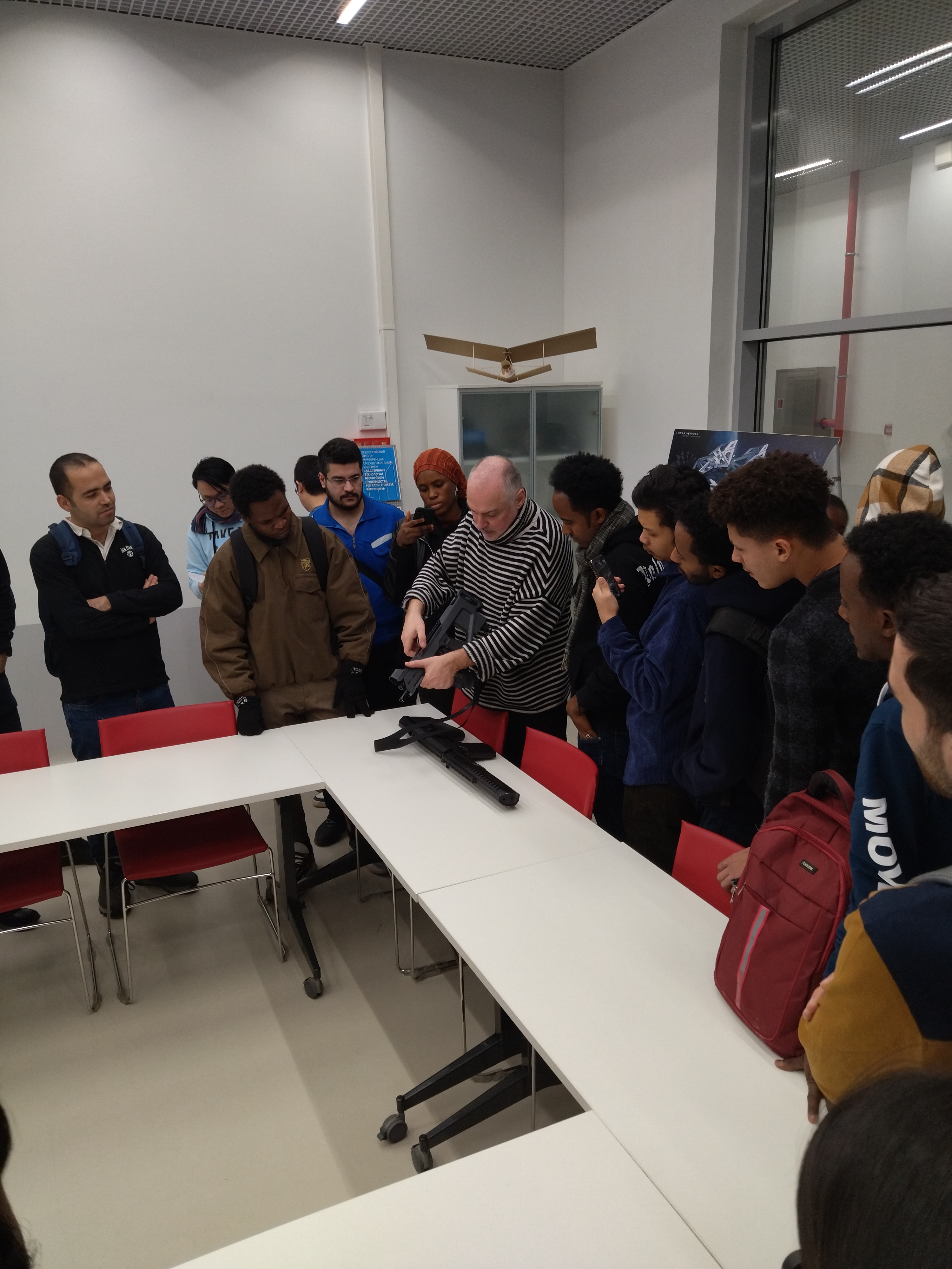 28.11.2022 слушатели группы ИТ-22-3 подготовительного отделения Центра профессиональной навигации и приема со своим преподавателем Е.А. Колесниковой посетили Инжиринговый центр прототипирования высокой сложности «Кинетика». Центр является универсальной высокотехнологической цифровой лабораторией, которая позволяет осуществлять полный цикл создания функциональных прототипов высокой сложности. Слушатели с удовольствием ознакомились с моделями беспилотного вертолета, аэротакси, с дизайном стрелковых комплексов, узнали о перспективной боевой экипировке, о концепции транспортного экзоскелета и других разработках.
