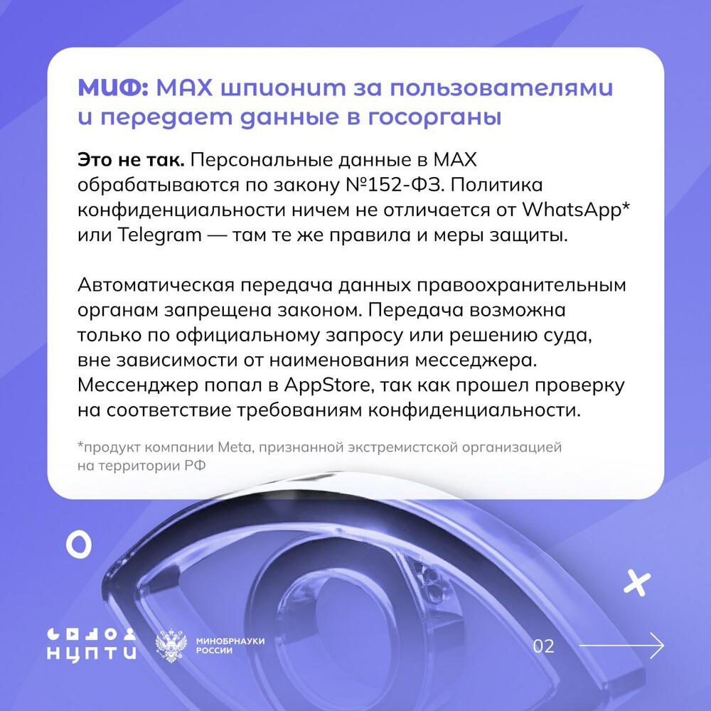 Дискредитация отечественных цифровых ресурсов — актуальная проблема, подрывающая доверие к цифровым ресурсам России. Разберем популярные мифы о мессенджере МАХ в карточках.