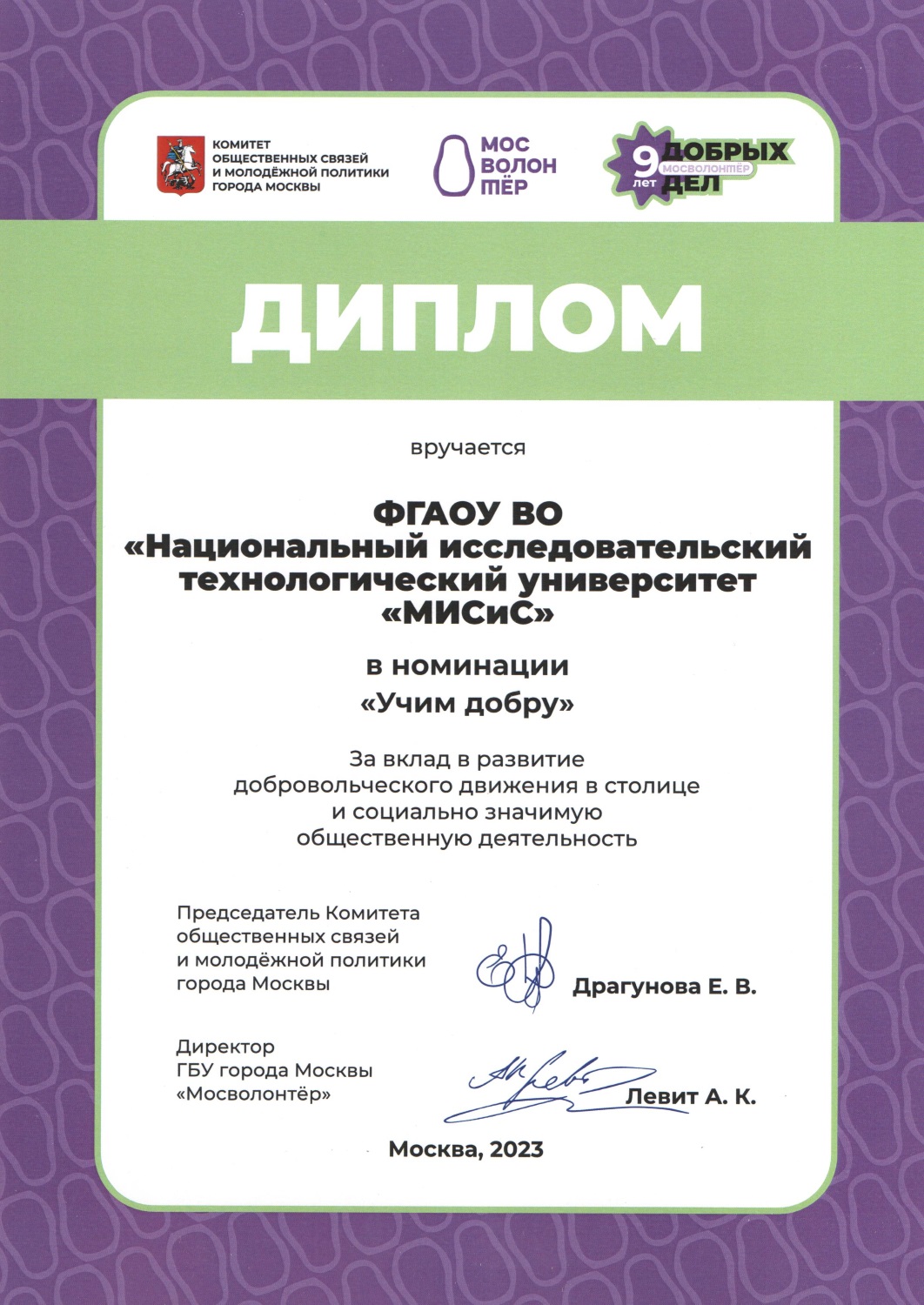 Благотворительные проекты, участие в программах по патриотическому воспитанию, забота о природе и формирование экологического сознания, помощь и уважительное отношение к ветеранам, проявление гражданской позиции — все это является привычной практикой и образом жизни студентов НИТУ МИСИС.